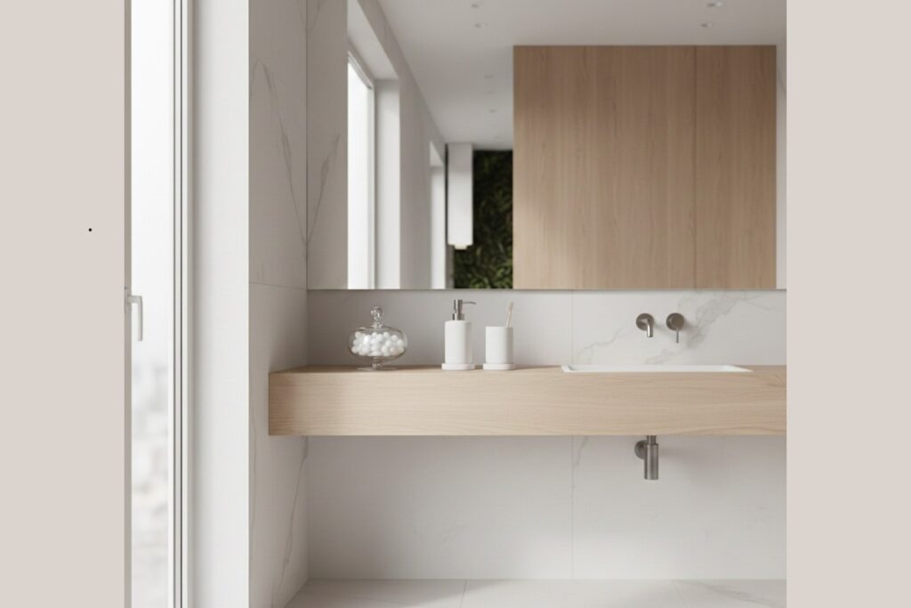 Para garantir um banheiro bonito por mais tempo, é importante escolher materiais que resistam bem à umidade e ao uso diário.