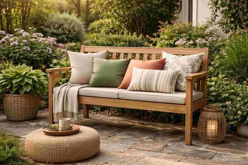 Almofadas e tecidos para bancos de jardim: como usar