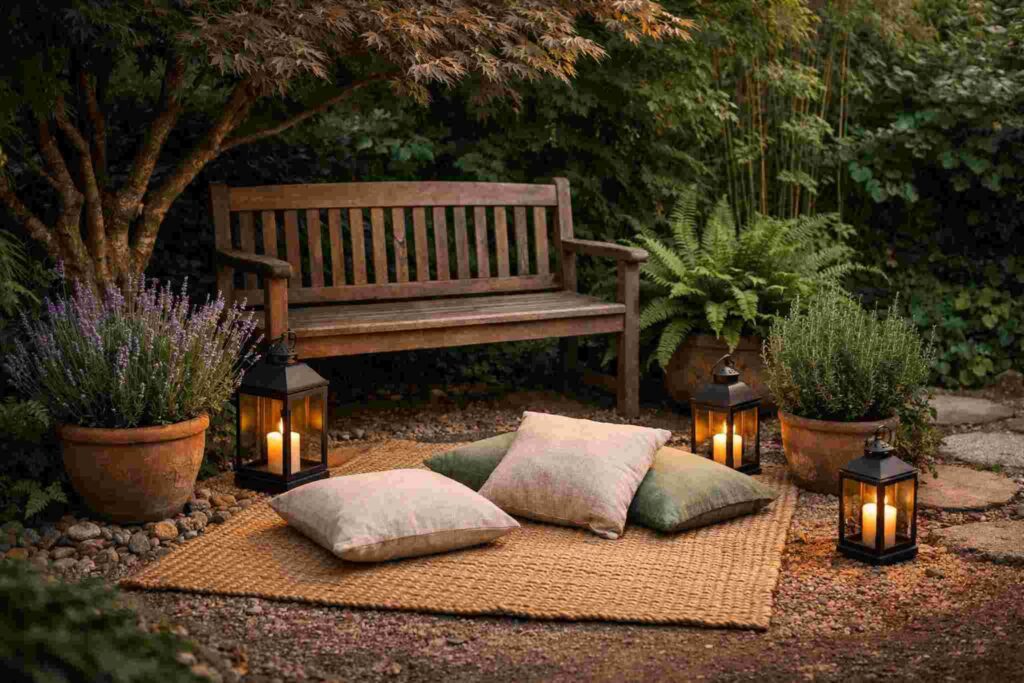 Um jardim pequeno com cantinho zen oferece tranquilidade e bem-estar mesmo em espaços reduzidos