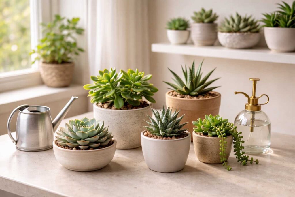 Vamos ver agora três formas reais de aplicar os cuidados com suculentas no dia a dia.