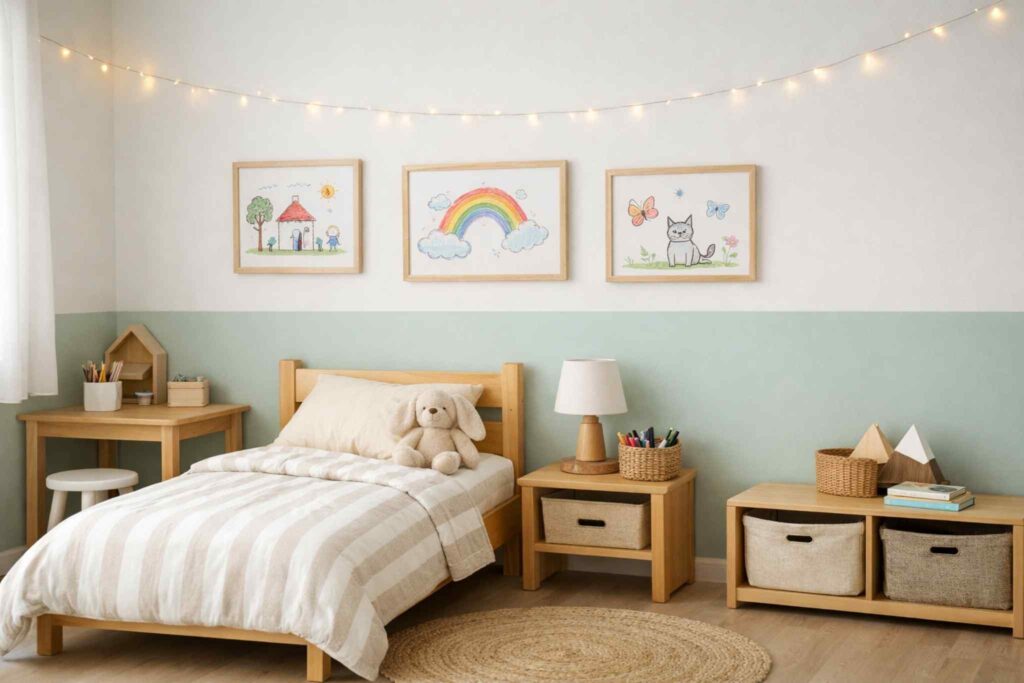 Se quiser algo ainda mais econômico, pinte apenas meia parede. Isso dá um toque moderno e reduz o custo com tinta. As crianças costumam amar participar desse processo, então envolvê-las na escolha das cores é uma ótima ideia.