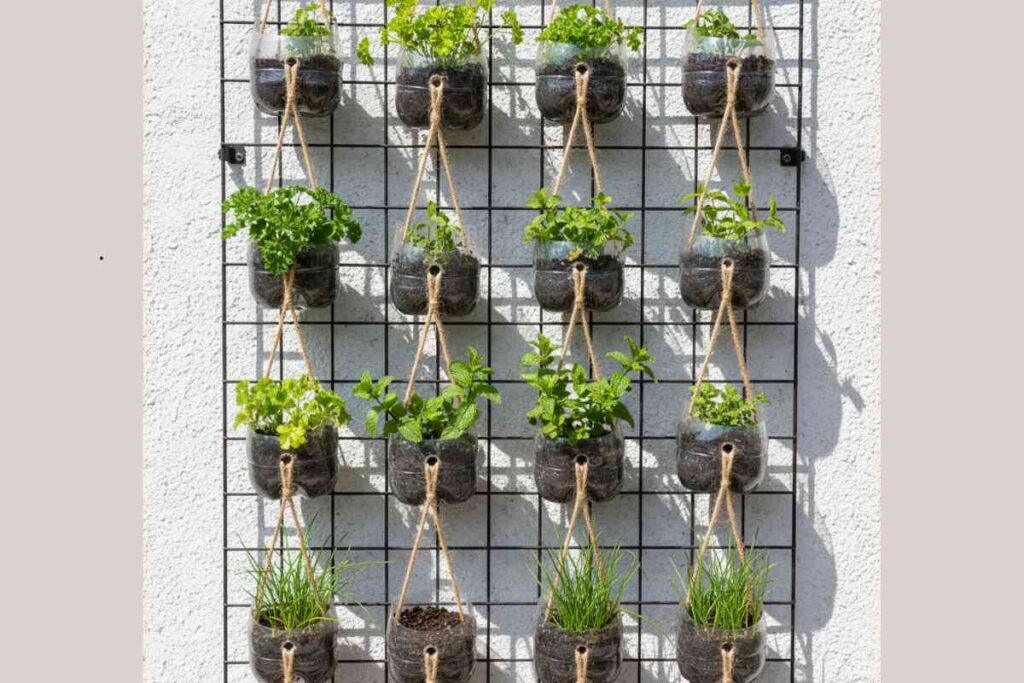 2. Jardim com garrafas PET suspensas