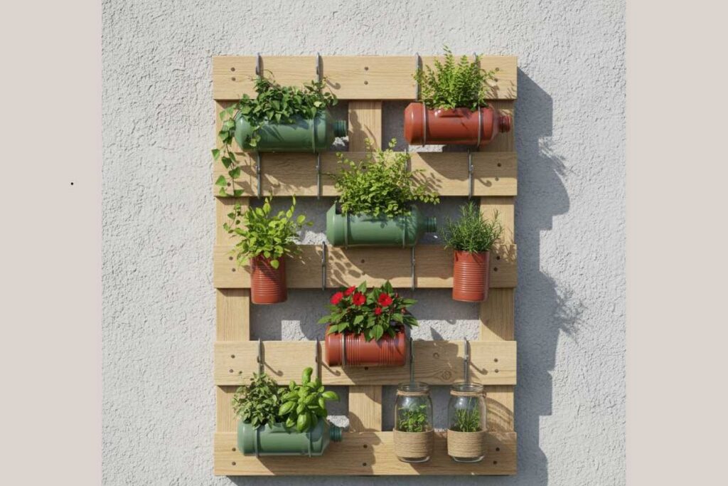 Criar um jardim vertical gastando pouco começa pela escolha certeira dos materiais. Muitos itens que você já tem em casa, ou consegue de graça, servem como estrutura.