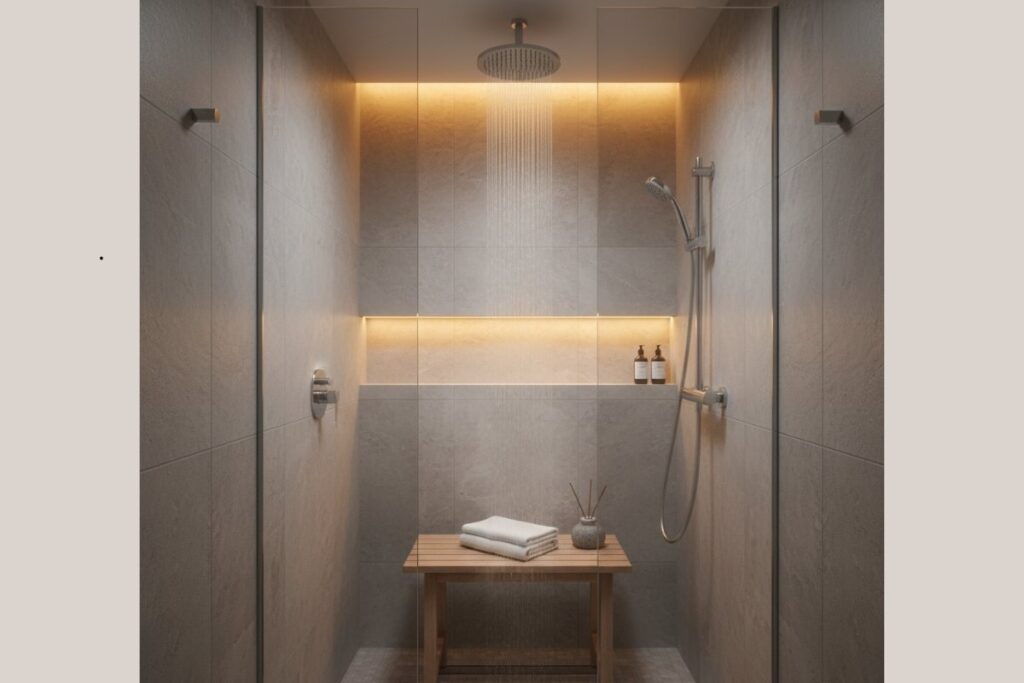 | Acessórios confortáveis | Tapetes macios, porta-sabonete elegante. | Aumenta o conforto e a experiência sensorial. |