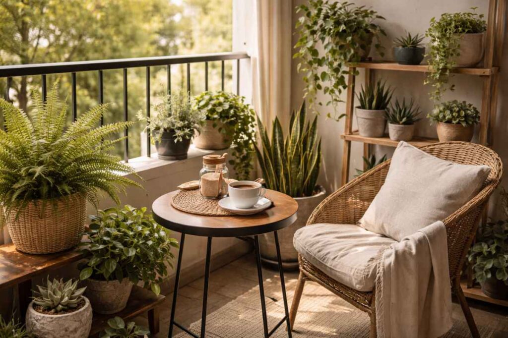 Plantas que combinam com cantinho de café na varanda