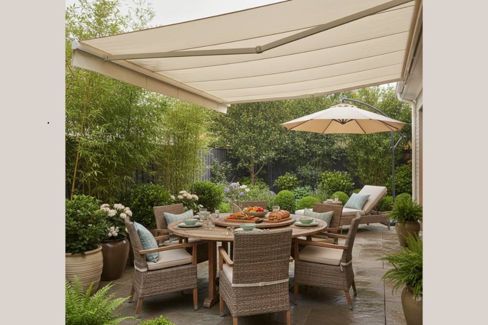 Em áreas externas, a proteção contra o sol forte é indispensável. Ombrelones, tendas e toldos retráteis ajudam a criar sombra e tornam o ambiente mais confortável, além de protegerem móveis e alimentos.