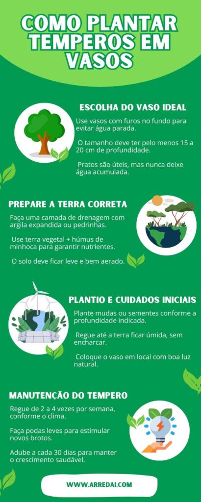 A seguir, vamos explicar todos os passos e cuidados para montar sua mini-horta de temperos em vasos e garantir que suas plantas cresçam saudáveis e saborosas.