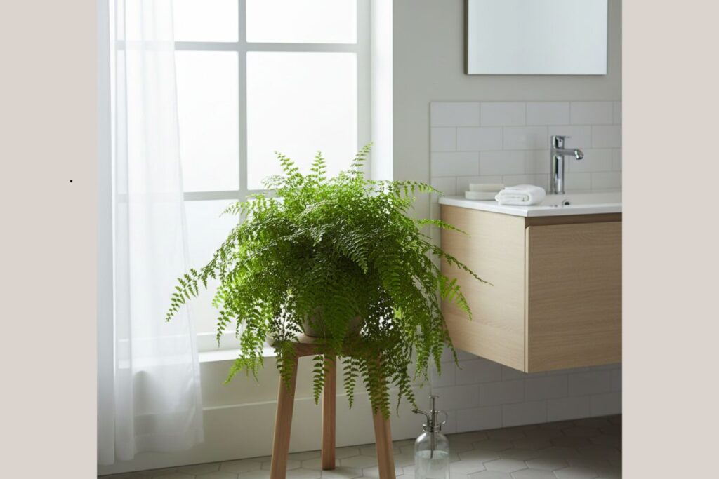 A samambaia gosta de umidade, mas o excesso pode favorecer o surgimento de ácaros. Por isso, posicionar a planta próxima à janela garante melhor ventilação e equilíbrio do ambiente.
