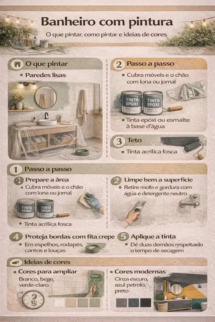 Este infográfico mostra como renovar o banheiro com pintura, reunindo dicas simples para alcançar um resultado bonito e durável.