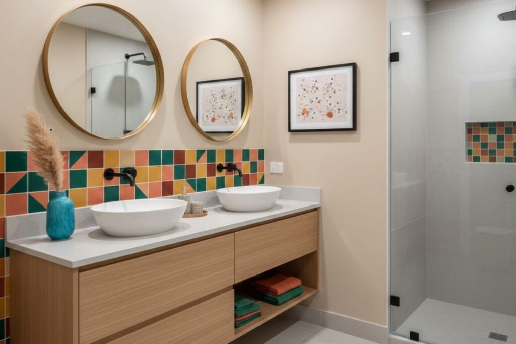 Inserir cor no banheiro não exige obra. Pequenos detalhes podem transformar completamente o visual, trazendo vida e personalidade ao espaço.