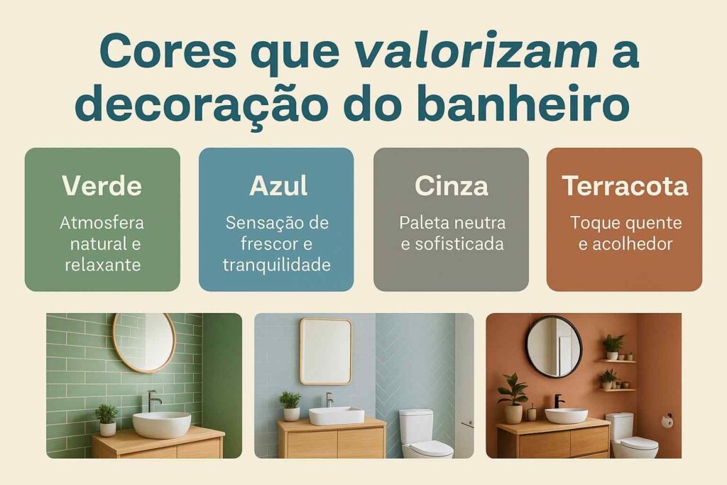 Usar tons que combinem com o espaço, iluminação e estilo desejado permite transformar até o banheiro mais simples em um ambiente sofisticado e funcional.