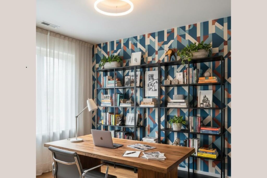 No home office, o papel de parede vai além da estética. Ele influencia a concentração, o conforto visual e até a produtividade ao longo do dia.
