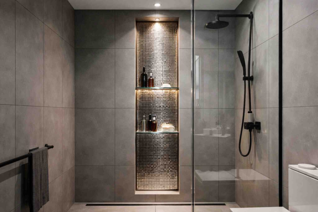 Exemplo 2: nicho do box com pastilhas metalizadas