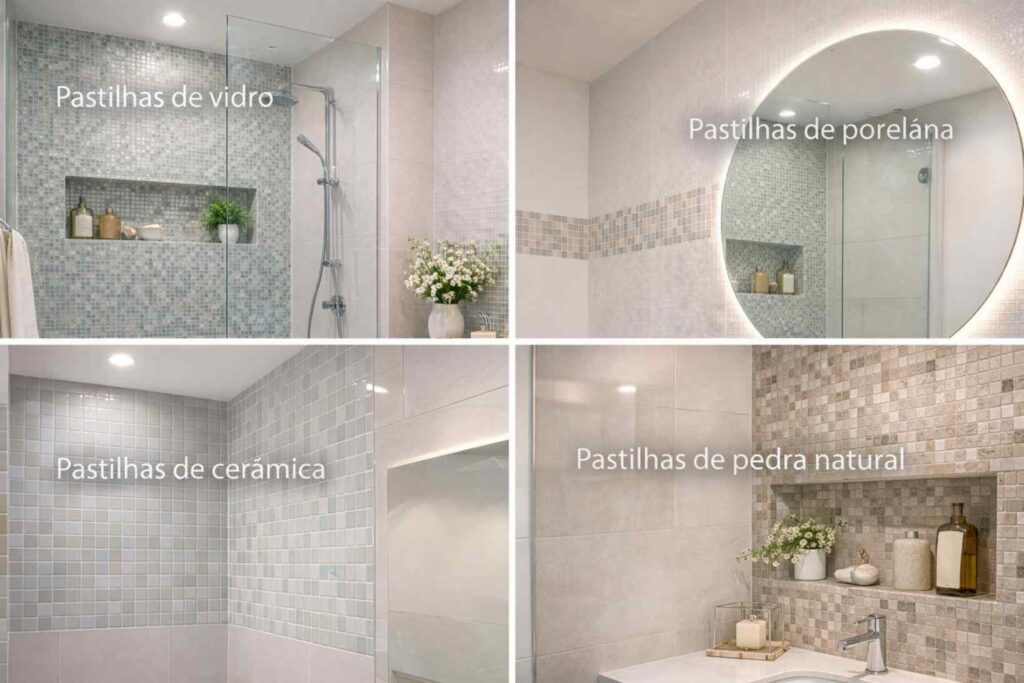A escolha do tipo de pastilha faz toda a diferença no resultado final. Cada material oferece um efeito visual e características específicas.
