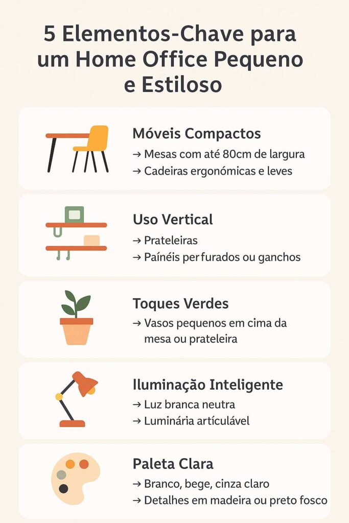 Aqui está um infográfico com dicas visuais que ajudam na hora de montar seu cantinho de trabalho em espaços reduzidos: