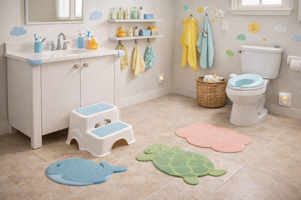 Com um pouco de pesquisa, é possível encontrar soluções decorativas e seguras que se integram ao estilo do seu banheiro.