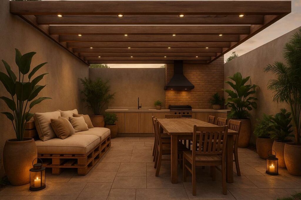 Um espaço gourmet externo pequeno pode ser funcional e aconchegante quando bem planejado. O segredo está em escolher soluções práticas, que aproveitem cada centímetro sem comprometer o conforto e a circulação.