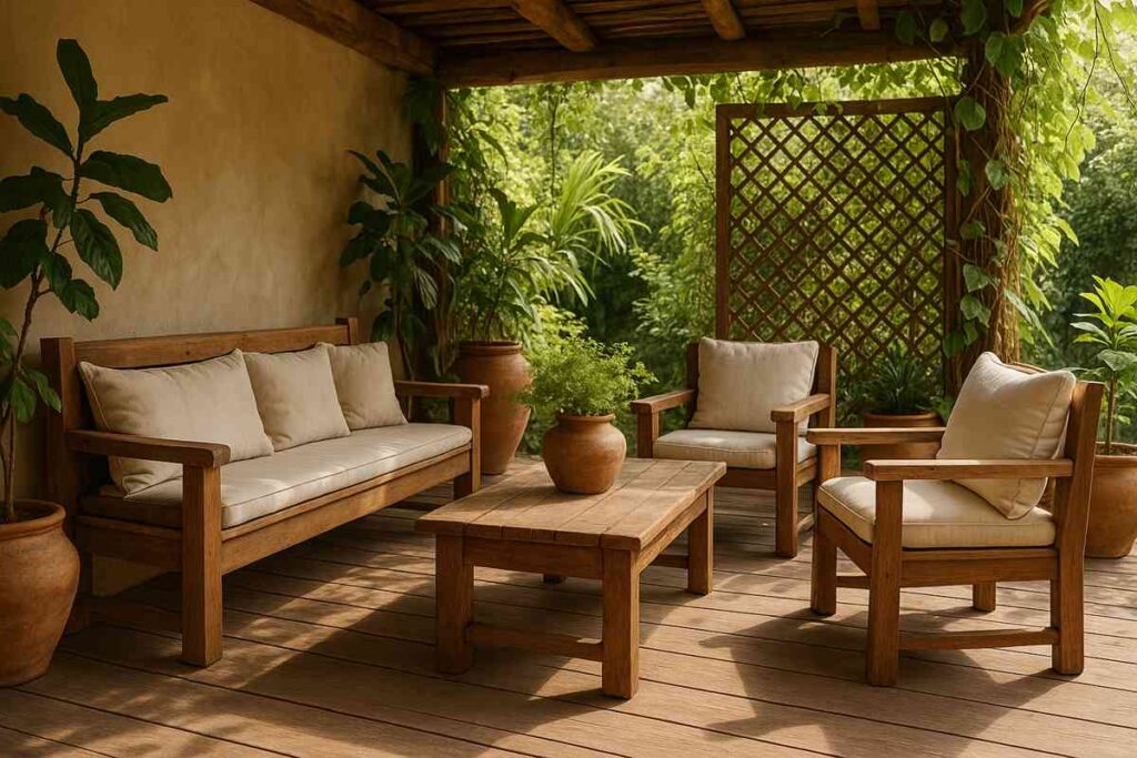 No entanto, a grande desvantagem é a manutenção constante. Diferente da fibra sintética, móveis de madeira exigem proteção contra sol, chuva e umidade. Verniz, óleo ou seladores precisam ser reaplicados com frequência.
